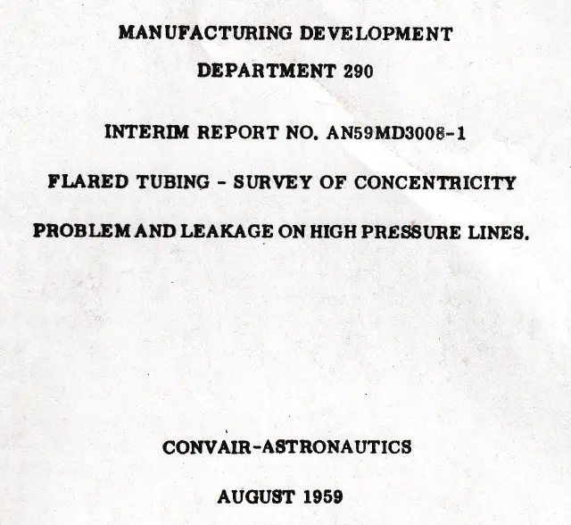 Historical SECO SEALS document – Post 2 is from Voi-Shan which introduces the “The Conical Seal” and includes the “Interim Report No. AN AN59MD3008-1, Flared Tubing – Survey of Concentricity” regarding the “Problem and leakage on High Pressure Lines” for sealing helium lines by Convair-Astronautics in August 1959.